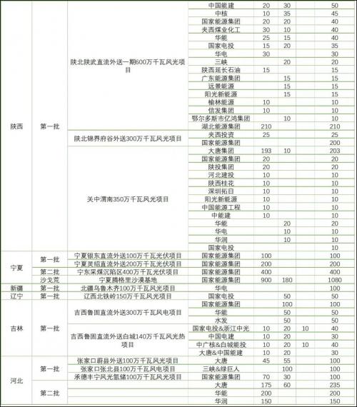 隨著相關(guān)各類信息的不斷披露,各個(gè)風(fēng)光大基地項(xiàng)目的業(yè)主單位也逐漸明確。