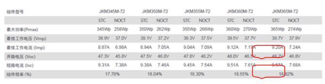 實際上,要理解這些并不難,較之常規(guī)多晶單晶組件,雙面組件的峰值功率電流及短路電流都有很大提升。為證明這一結(jié)論,我們不妨截取代表性組件企業(yè)主流功率段單晶組件(60片)的性能參數(shù)來看: