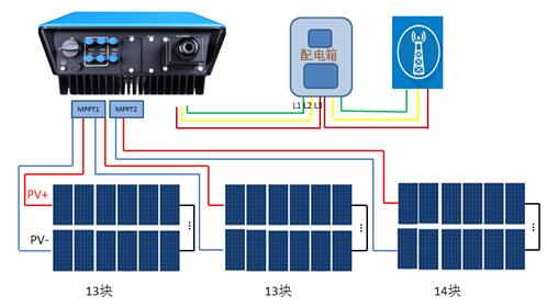 MPPT1的兩路分別串接13塊組件,MPPT2串接14塊組件