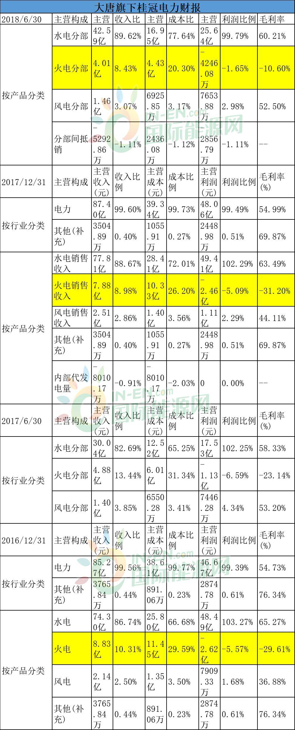 大唐集團(tuán)旗下的上市公司桂冠電力(600236)財(cái)報(bào)顯示,火電板塊一直都在拖業(yè)績(jī)的后腿。2016年火電利潤(rùn)占比是-5.57%,2017年上半年,火電利潤(rùn)占比是-6.59%,到2018年上半年,火電利潤(rùn)占比依然是負(fù)數(shù)。