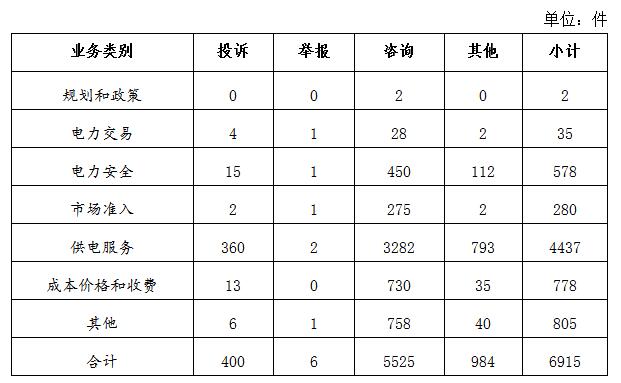 2020年10月共收到投訴舉報信息418件,根據(jù)國家有關(guān)法律法規(guī)規(guī)定,國家能源局派出機構(gòu)對屬于監(jiān)管職責范圍的390件進行了受理,占投訴舉報量的93.30%;其他不屬于能源監(jiān)管職責范圍的已按照有關(guān)規(guī)定進行了及時轉(zhuǎn)辦。