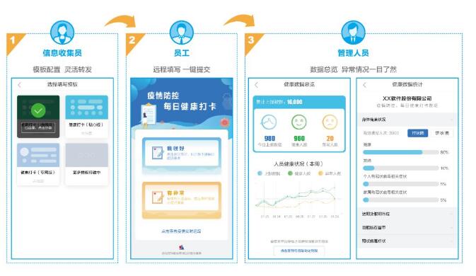 員工健康打卡系統(tǒng)是遠(yuǎn)光軟件在疫情發(fā)生后,第一時(shí)間組建團(tuán)隊(duì)、抓緊研發(fā)的一款采集員工健康信息及異常情況的產(chǎn)品。該系統(tǒng)已于2月2日上線,免費(fèi)提供給各機(jī)關(guān)、企業(yè)、社會(huì)組織使用。截至目前,已有800多家企業(yè)注冊(cè)并使用該系統(tǒng)。