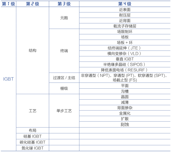 2.報告給出了IGBT的技術分類表,如下(部分):