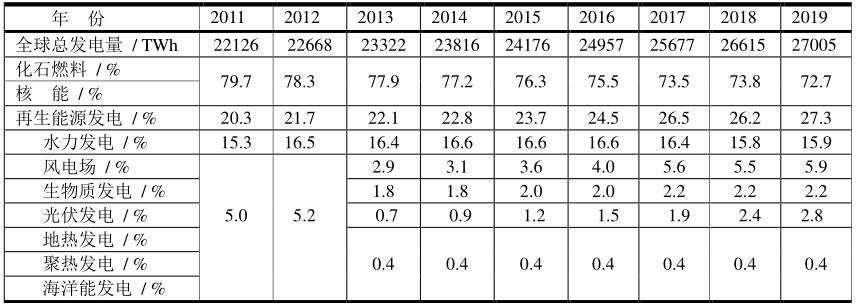 2010~2019年全球電力生產(chǎn)結構(REN21統(tǒng)計)