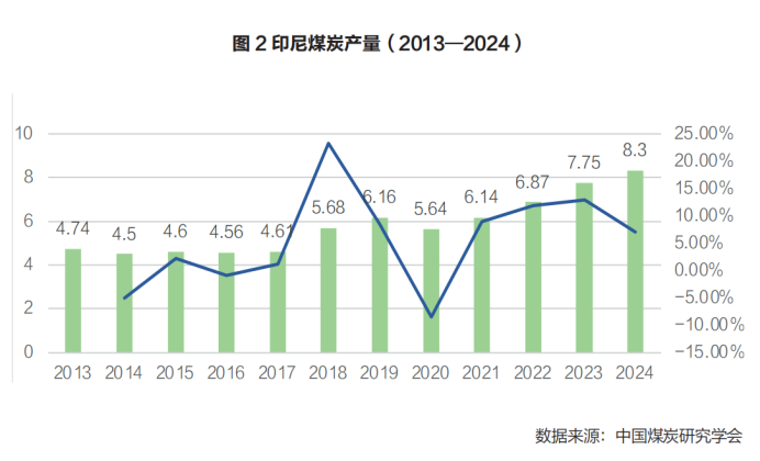 就石油、天然氣和煤炭化石能源稟賦而言,印尼油氣算不上富足,但煤炭資源豐富。印尼曾經(jīng)為OPEC成員國,但在2003年成為石油凈進(jìn)口國,并于2008年退出該組織。雖然印尼天然氣儲量排名東盟各國前列,但預(yù)計(jì)在2030年會(huì)變成天然氣凈進(jìn)口國。印尼煤炭儲量豐富,世界排名第六,儲采比為62。印尼是排名世界前列的煤炭生產(chǎn)和出口大國。根據(jù)印尼能源和礦產(chǎn)部相關(guān)數(shù)據(jù)統(tǒng)計(jì),2024年全年印尼煤炭產(chǎn)量已經(jīng)達(dá)到8.3億噸、出口4.3億噸。