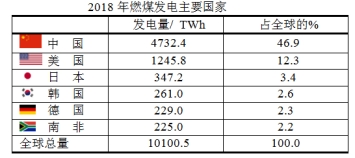 由于燃煤發(fā)電價(jià)廉,一直居高位,2011年占全球發(fā)電總量的9144/22126= 41.3%,到2018年回落速度緩慢,仍然保持在10100.5/26614.8= 38.0%。2018年最大的燃煤發(fā)電生產(chǎn)國是中國,占全球燃煤發(fā)電總量的46.9%;其次是美國,占總量的 12.3%,比往年逐步回落。