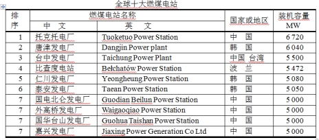 燃煤發(fā)電仍然霸占全球電力生產(chǎn)的主導(dǎo)地位,主要生產(chǎn)國是中國,在全球前十位中占六席。第一位由托克托電廠取代了原來的臺(tái)中發(fā)電廠。