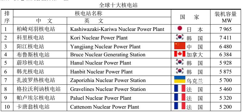 △ 世界上最大的核電站是日本柏崎刈羽核電站,裝機(jī)容量為7965MW,但2011年已經(jīng)停工。值得注意的是韓國核電站進(jìn)展很快,前十位核電站就占有3席,把美國和日本都摔到后面。另外值得注意的是中國陽江核電站躍居世界第三位。