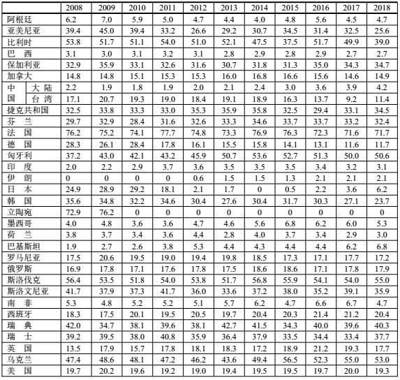 本數(shù)據(jù)是世界核能協(xié)會(huì)(World Nuclear Association,WNA)于 2019年8月份提供的數(shù)據(jù)。德國(guó)和日本核能發(fā)電在世界各國(guó)電力中的份額處于逐年下降,而中國(guó)大陸卻上升。