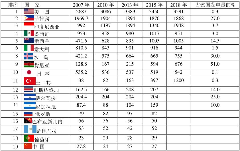 地熱裝機容量最大的國家(MW)