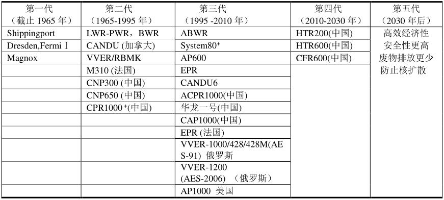 核電站反應堆類型進程