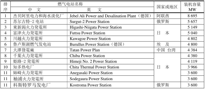 全球十三大燃氣電站