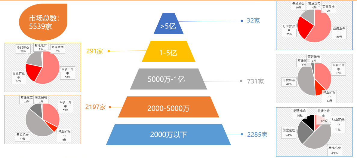 我們把盤柜廠的數(shù)據(jù)拿出來仔細(xì)分析了一下,行業(yè)里有5000多家經(jīng)營(yíng)活躍的盤柜廠,2000萬以下的有2200家,2000萬到5000萬的又有2000多家,5000萬到一個(gè)億的有700多家,1億到5億的有不到300家,5億以上的只有32家,從數(shù)據(jù)可以看出來這是一個(gè)非常分散的行業(yè)。