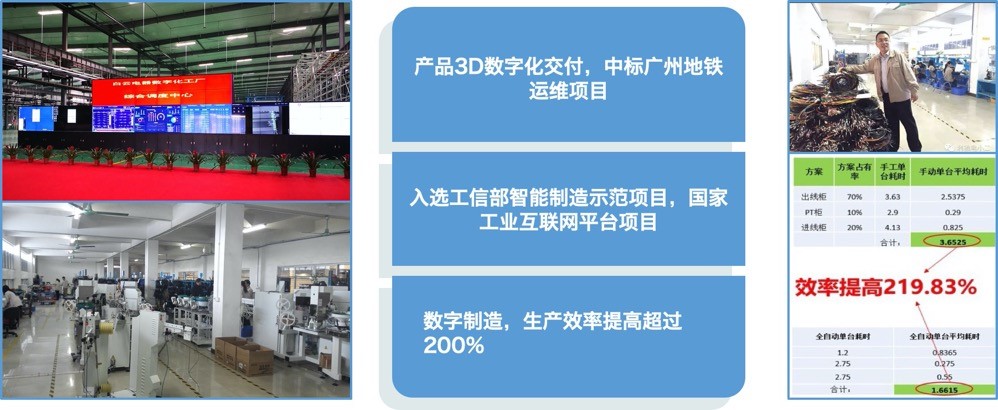 【白云電器】白云和利馳從2000年開始合作,最開始使用的利馳SuperWORKS軟件,白云的數(shù)字化工廠建設(shè)投資非常大,幾個(gè)億的投資,其中最關(guān)鍵的兩個(gè)工序,線束和母排都采用利馳的解決方案。線束的下線效率、接線的效率提高了219%。更重要的是白云通過和利馳的合作,有了三維模型,有了柜體的三維仿真數(shù)據(jù),廣州地鐵有個(gè)配電設(shè)備的維護(hù)平臺(tái),地鐵設(shè)備維護(hù)必須基于BIM模型,白云的電氣設(shè)備三維模型可以輕松轉(zhuǎn)化為BIM模型,在這方面利馳給白云做了大量的支持,基于此白云就可以承接廣州地鐵售后維護(hù)的項(xiàng)目。白云電器通過做數(shù)字化已經(jīng)實(shí)現(xiàn)了制造競(jìng)爭(zhēng)力很強(qiáng),運(yùn)維服務(wù)競(jìng)爭(zhēng)力更強(qiáng)。