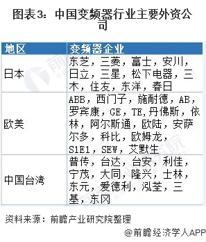 在國際變頻器市場上,德國、瑞士和日本處于領(lǐng)先地位,特別是在材料和制造工藝方面占據(jù)優(yōu)勢,變頻器產(chǎn)品可靠性好,使用壽命長;其次是美國、法國等發(fā)達(dá)國家,其技術(shù)先進(jìn),但企業(yè)規(guī)模與德國等國家的大型企業(yè)尚存在一定的差距。其中,規(guī)模較大、知名度較高的減速機(jī)制造商包括德國的西門子,瑞士的ABB,法國的施耐德,美國艾默生,丹麥的丹佛斯,英國的歐陸,日本的富士、三菱、安川、日立、東芝等企業(yè)。